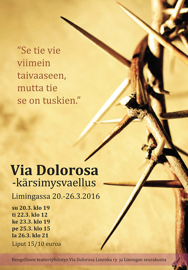 Via dolorosa -vaellusdraama esitetään Limingassa pääsiäisenä 2016. Lisätietoja tapahtumasta tulee lähempänä tapahtumaa.